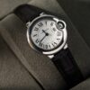 Cartier Ballon Bleu Women’s Replica 11 Watch White Dial Black Leather Strap 28mm