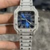 Cartier Santos Best Replica Watch Custom Moissanite Diamonds Blue Dial 39.8mm