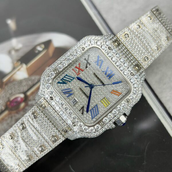 Cartier Santos Best Replica Watch With Full Stone 39.8mm
