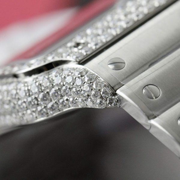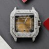 Cartier Santos Brown Dial Replica Watches Custom Moissanite Diamonds Metal Wire BV Factory 39.8mm