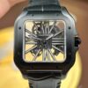 Cartier Santos Knock Off Watches Skeleton Dial Leather Strap Black 39.8mm