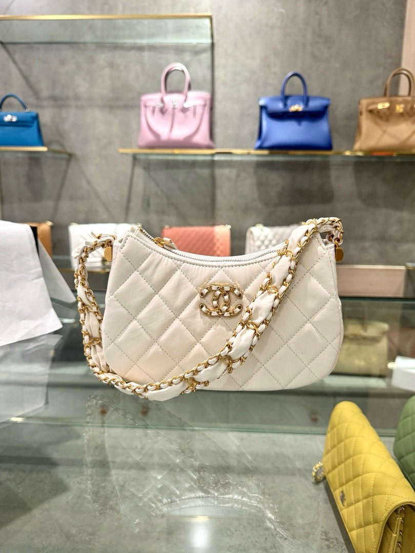 Chanel 23K Super High-Quality Hobo Handbag for Women, White 20.5x12x4.5cm