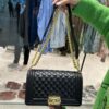 Chanel Boy Medium Super Quality Black Handbag with Gold Lock 25cm