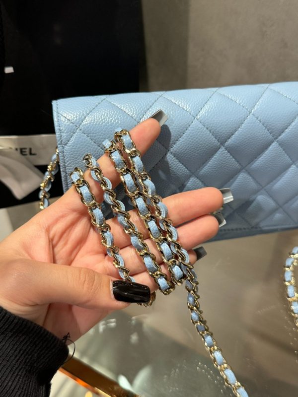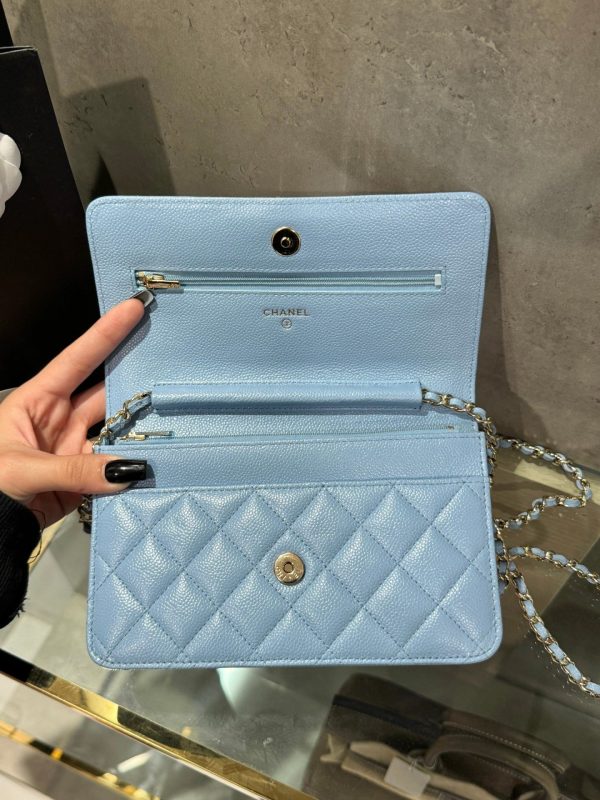 Chanel Caviar Tiny CC Wallet on Chain WOC Crossbody Bag Blue 19cm