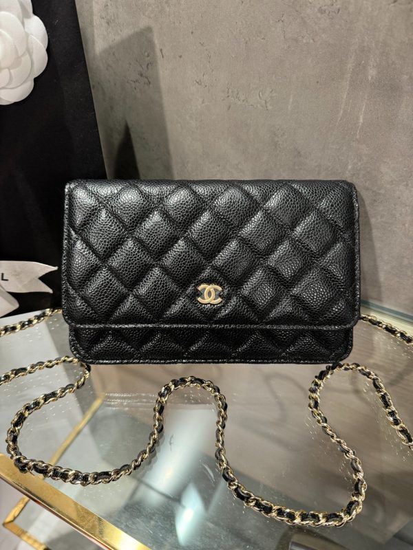 Chanel Caviar Tiny CC Wallet on Chain WOC Gold Plated Crossbody Bag 19cm