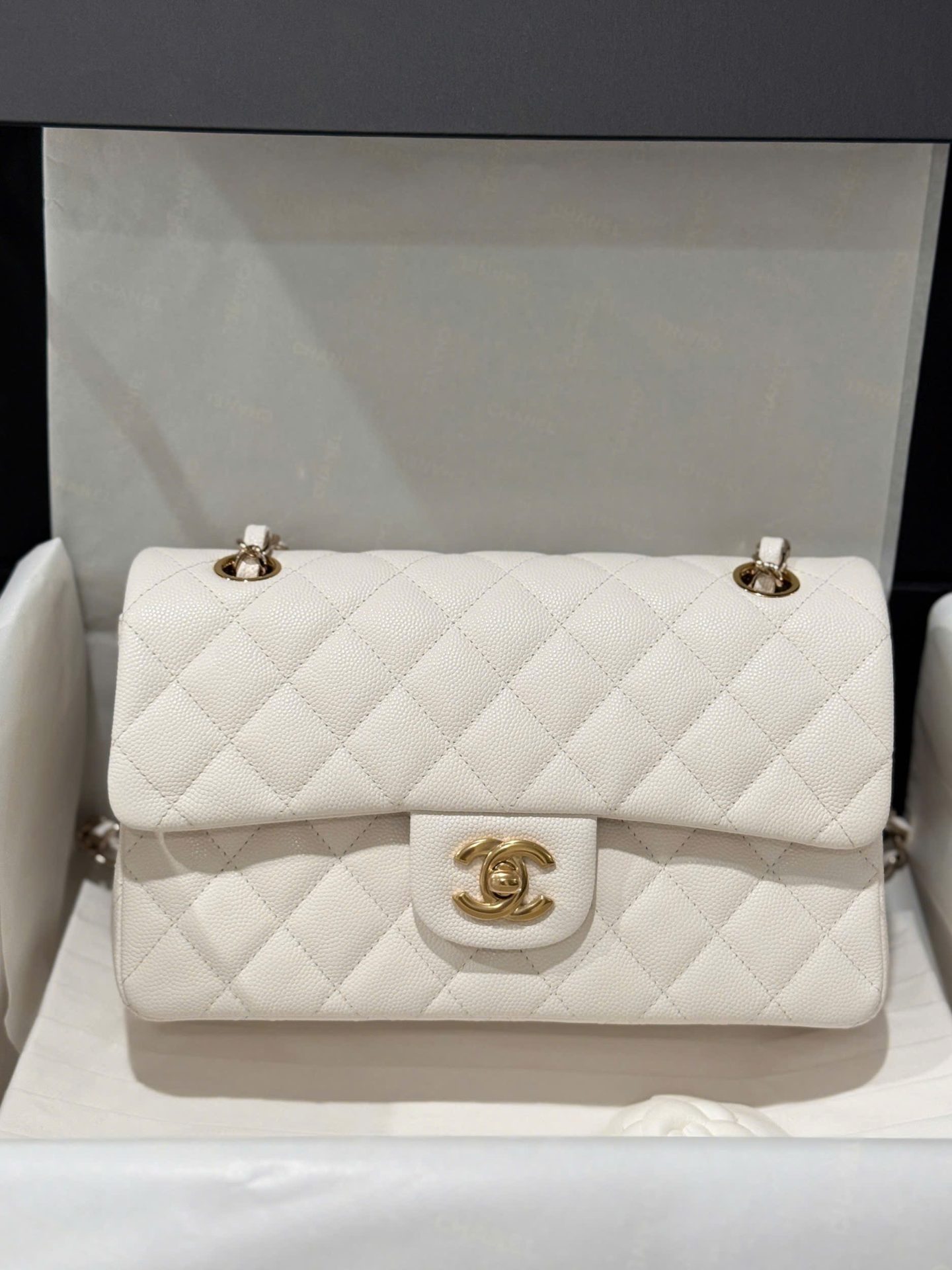 Chanel Classic Replica 11 High Quality White Handbag Gold Lock 23cm