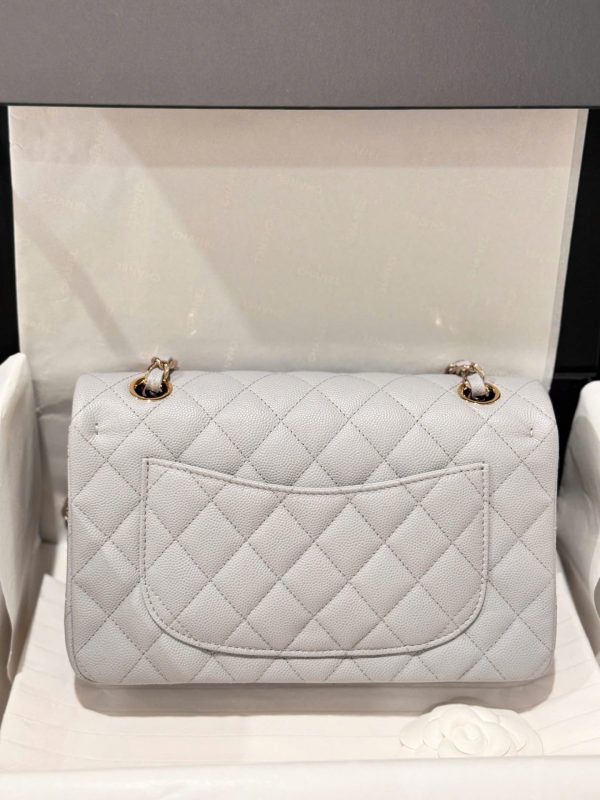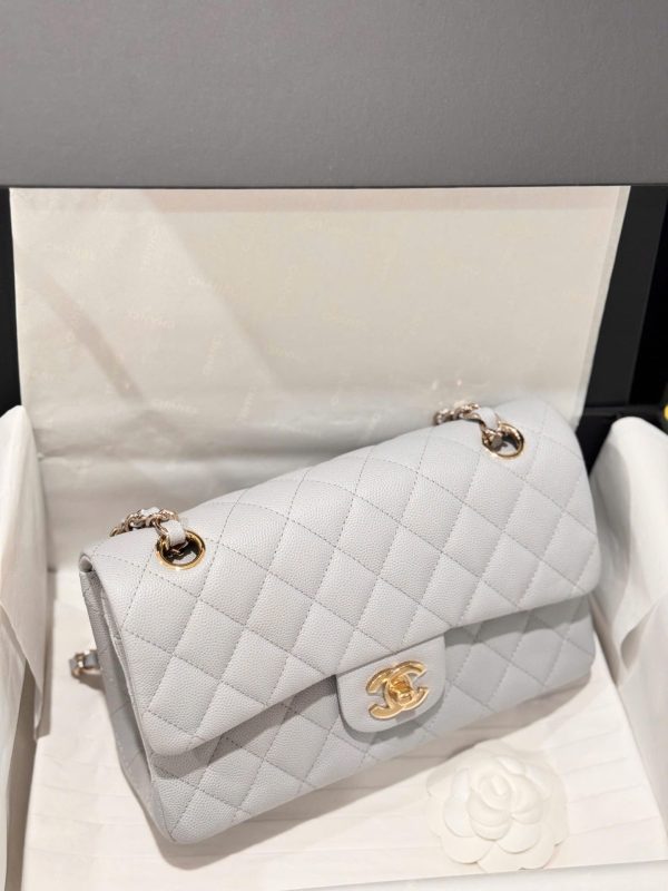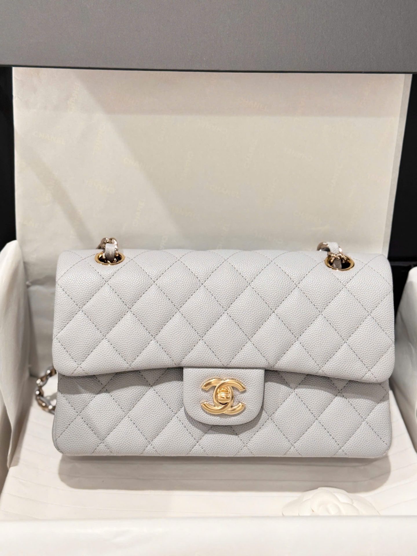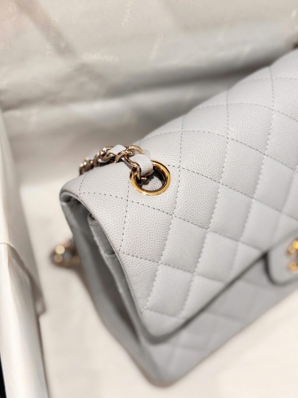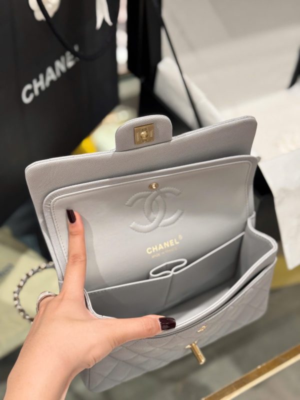 Chanel Classic Replica Women’s Handbag Gray Gold Lock 23cm