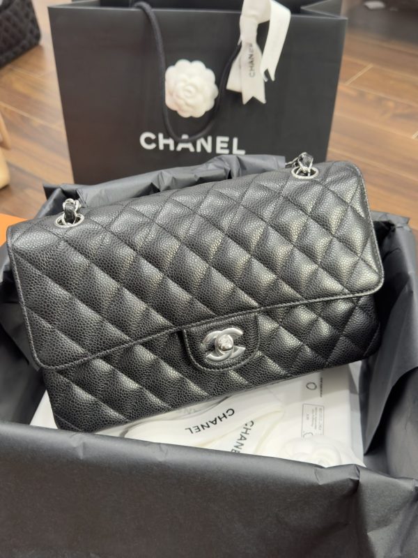 Chanel Classic Women’s Handbag Black Silver Lock Super Quality 25cm