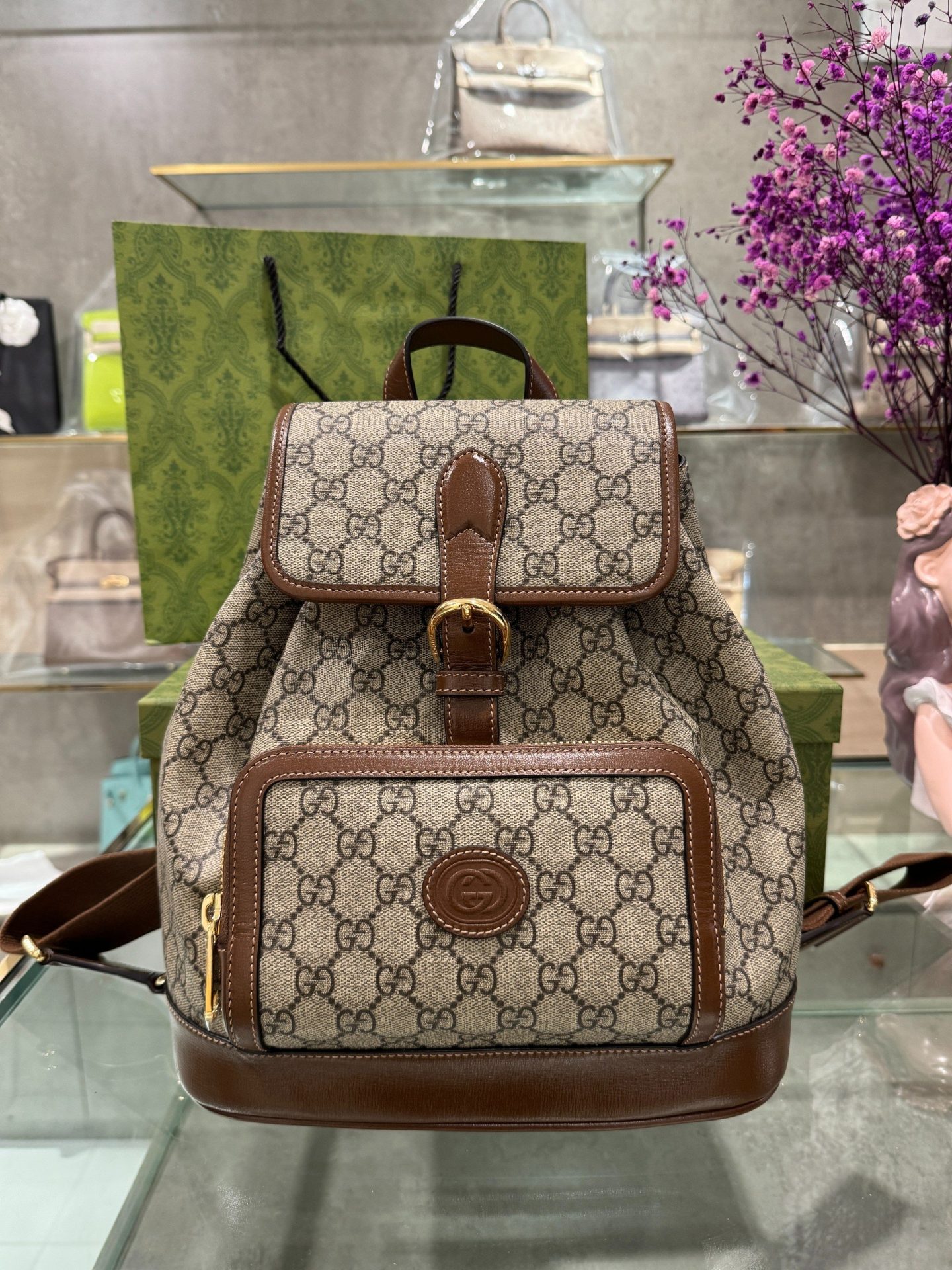 Gucci Backpack With Interlocking G Beige Super Premium Brown Canvas 26.5x30x13cm