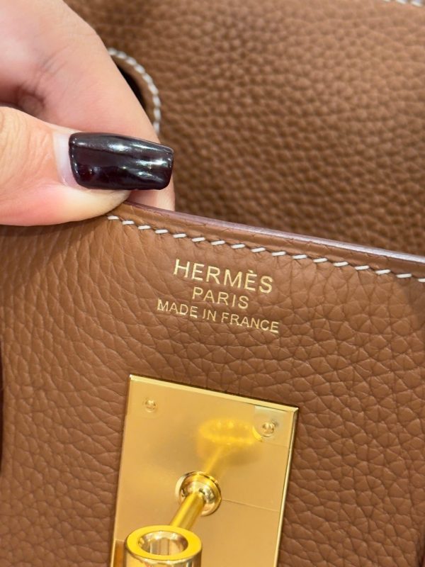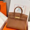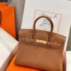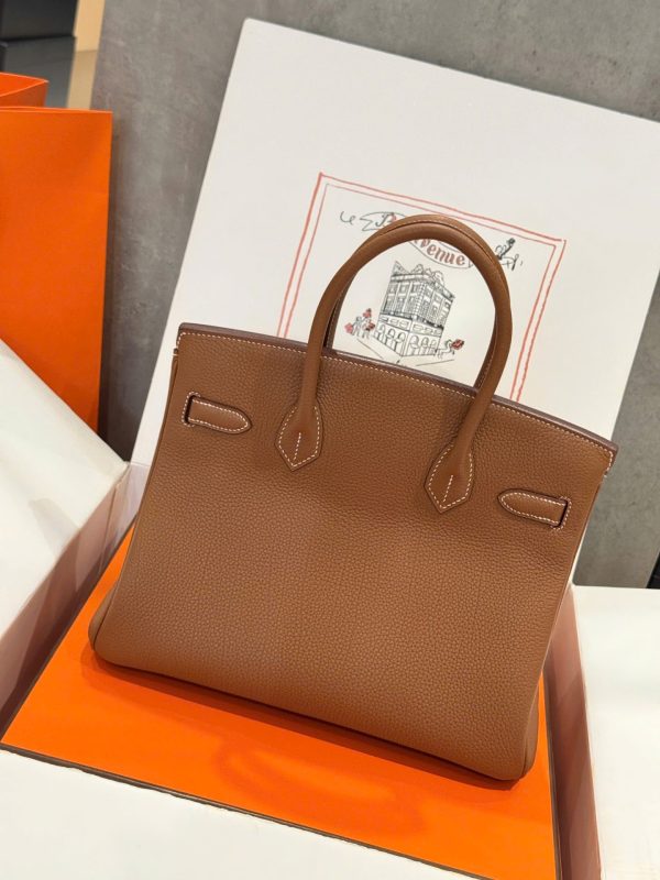 Hermes Birkin Like Auth Women’s Handbag Brown Gold Lock 30cm