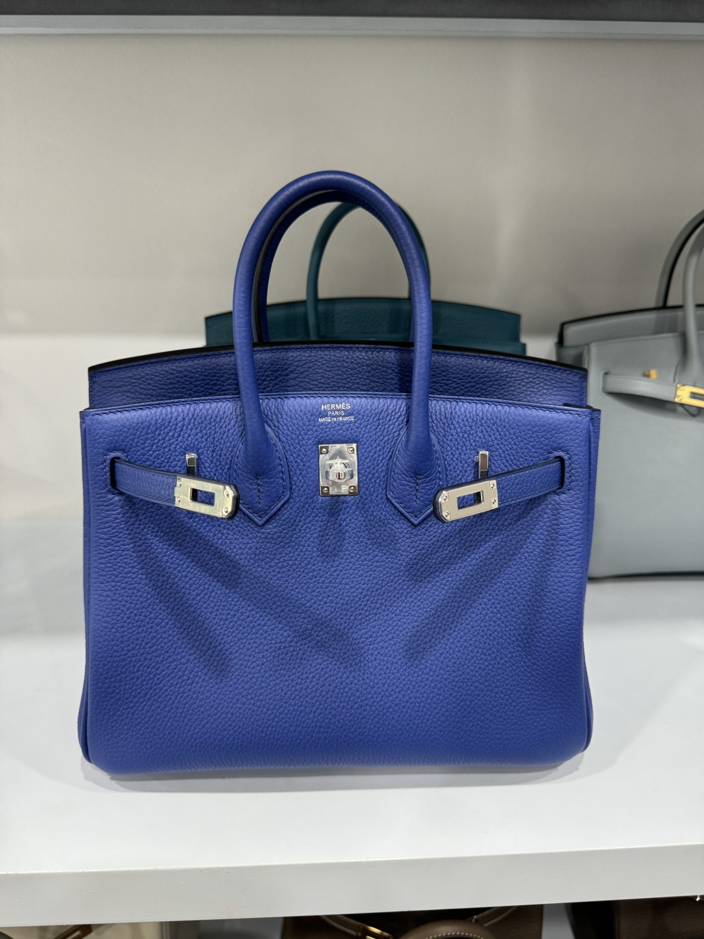 Hermes Birkin PHW Togo Like Auth Women’s Handbag Dark Blue Silver Lock 25cm