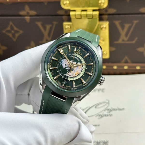 Omega Aqua Terra Worldtimer Imitation Fake Watches Green Dial Rubber Strap VS Factory 43mm