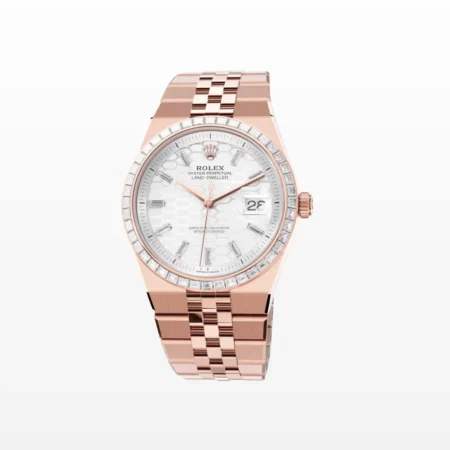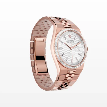 Brand Rolex Model Land-Dweller Reference 127285TBR Gender Women’s watch Movement Kinetic (Automatic) Case Diameter 36 mm Case Material Everose Gold set with diamonds Band Material Everose Gold (Flat Jubilee) Dial Color Intense white Quality Swiss (ETA) Glass Sapphire crystal Water Resistance SuperClone watches are waterproof up to 30 meters